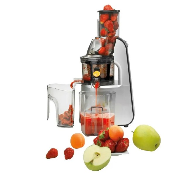 Vertikálny odšťavovač s elektromotorom s výkonom 240 W. Odšťavovač pracuje rýchlosťou 60 ot./min. Vybavený je tromi nerezovými sitkami. Zariadenie sa neprehrieva a neprenáša žiadne teplo. Plniaci otvor má šírku 75 mm. Údržba je nenáročná, prístroj sa jednoducho demontuje. Materiály pôsobia kvalitne a odolné. S odšťavovačom sa dajú pripravovať aj orechové maslá.