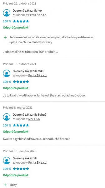 Výkonný horizontálny odšťavovač výrobcu G21 si svojou kvalitou a vysokou úrovňou výťažnosti získal množstvo priaznivcov. Elektromotor s príkonom 200 W sa neprehrieva. Nás zaujal nielen výkonom a schopnosťou spracovať aj tvrdú koreňovú zeleninu vrátane repy, ale takisto moderným dizajnom a ovládaním. Ovládanie dotykovými tlačidlami je jednoduché a jedným tlačidlom aktivujete aj spätný chod. Zákazníci si pochvaľujú aj tichý chod a široký plniaci otvor. Súčasťou príslušenstva je aj vtláčadlo a tiež odpadová nádobka.