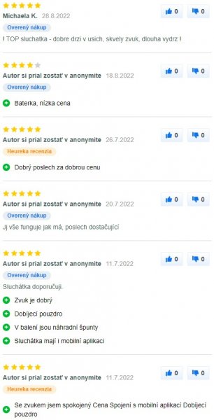 Používatelia sú spokojní so zvukom aj s výdržou batérie. Plus dali za dobrú cenu, praktické puzdro či za aplikáciu, cez ktorú sa slúchadlá pripájajú. Ocenili kvalitné spracovanie, dobré držanie v ušiach aj pekný dizajn. Ako uviedli, zvuk je možné modifikovať priamo v aplikácii a aplikácia je prehľadná. Plusom je aj LED dióda na krabičke i slúchadlách. Vyzdvihli tiež to, že aplikácia ukáže polohu slúchadla, ak sa stratí. Spotrebiteľom prekážalo, že potláčanie okolitého šumu nie je možné vypnúť a dosah Bluetooth nie je najlepší, v dôsledku čoho prichádza občas k odpájaniu.